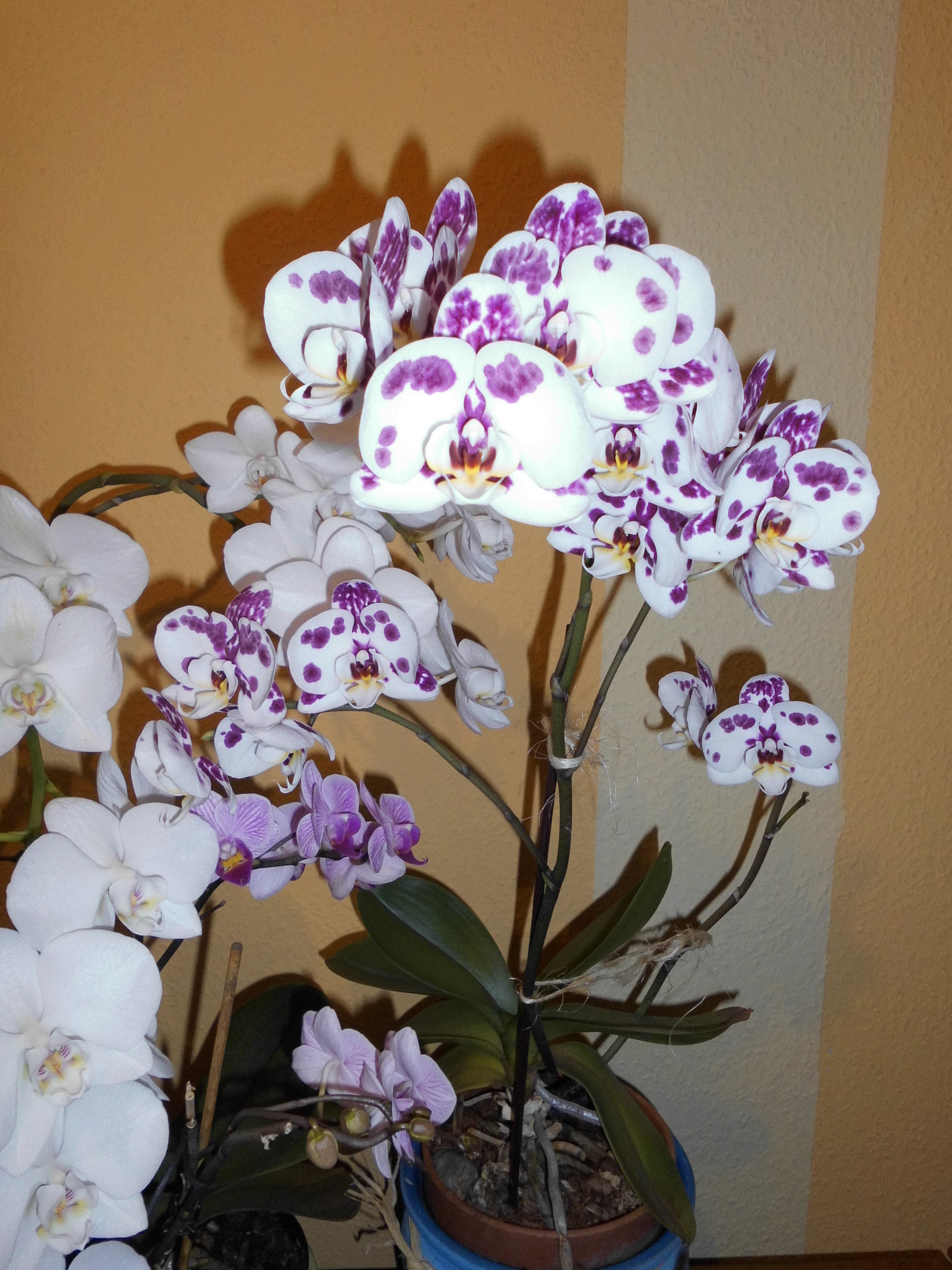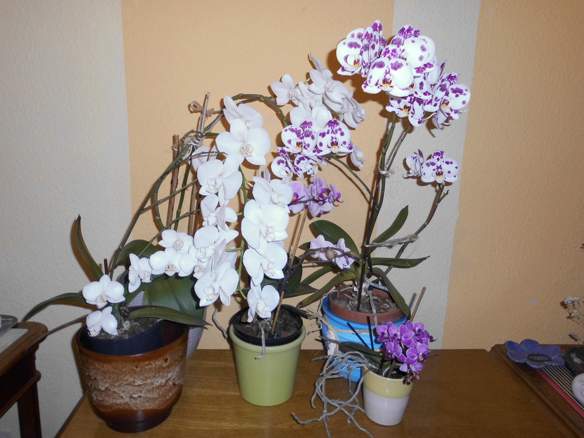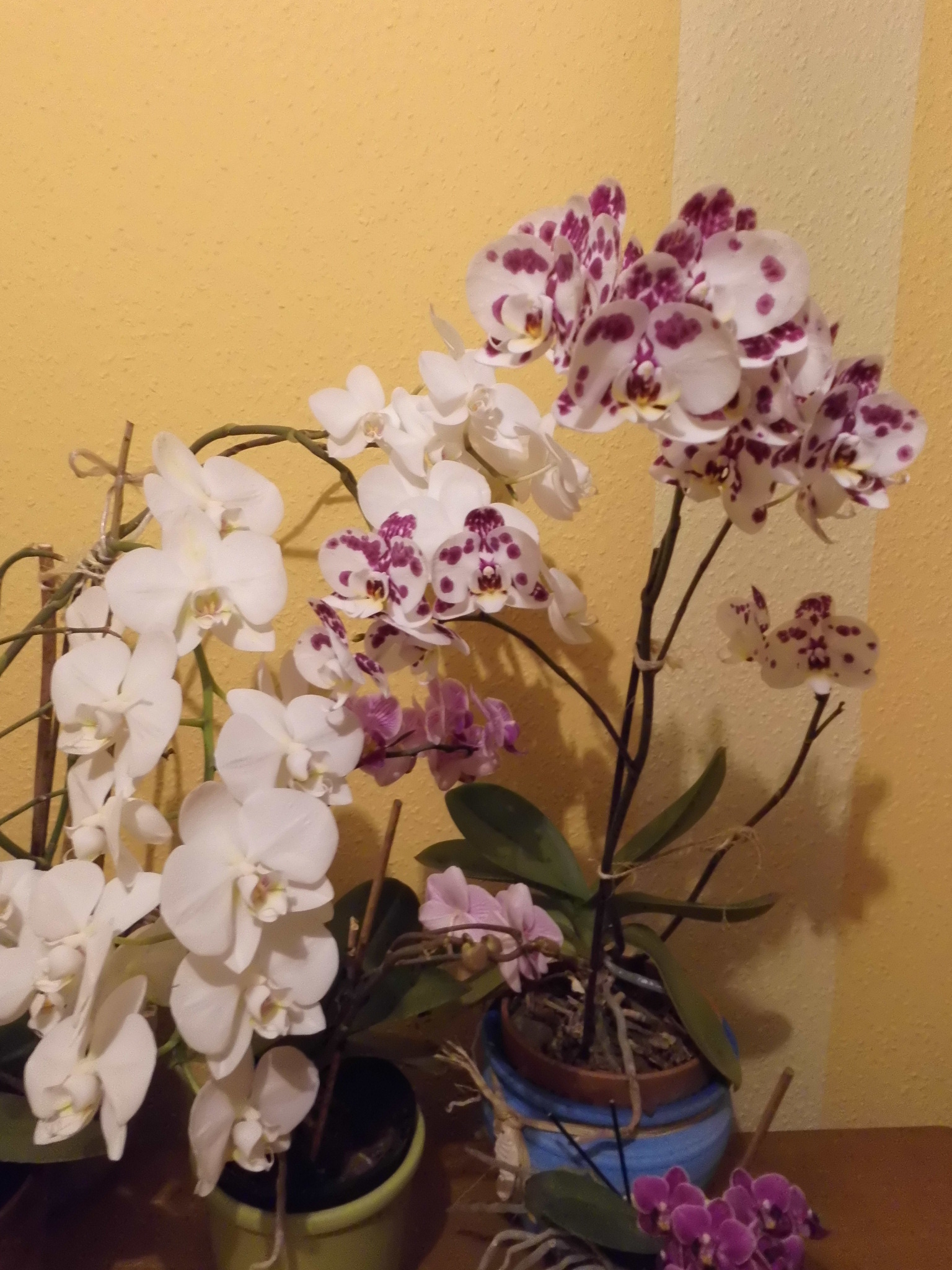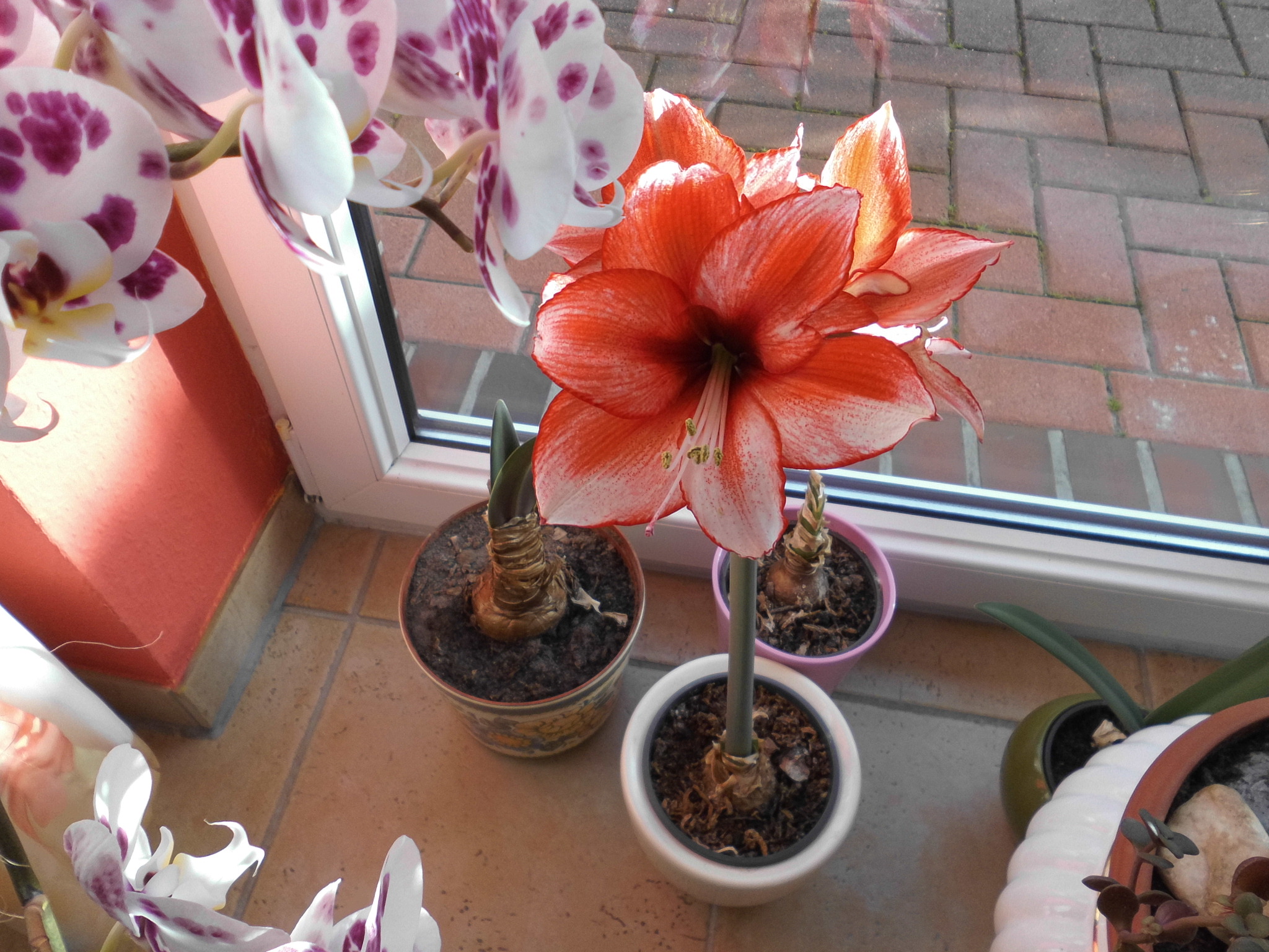 Die Pflanzen , Amaryllis und Orchidee stehen im Innenraum vor der Terassentür, ja.. Also ich hab in der Küche und auch im Wohnzimmer 2 bzw. drei Fenster die wie Türen zu öffnen sind, von daher ist das mein hauptsächlicher Pflanzenstellplatz, Fensterbänke habe ich nur recht schmale, da kann nicht viel stehen. Die anderen Orchideen hatte ich fürs Foto auf einen Schrank gestellt, weil es sonst im dunkeln nicht so gut ging, dann spieglte sich alles im Fenster durch den Blitz.