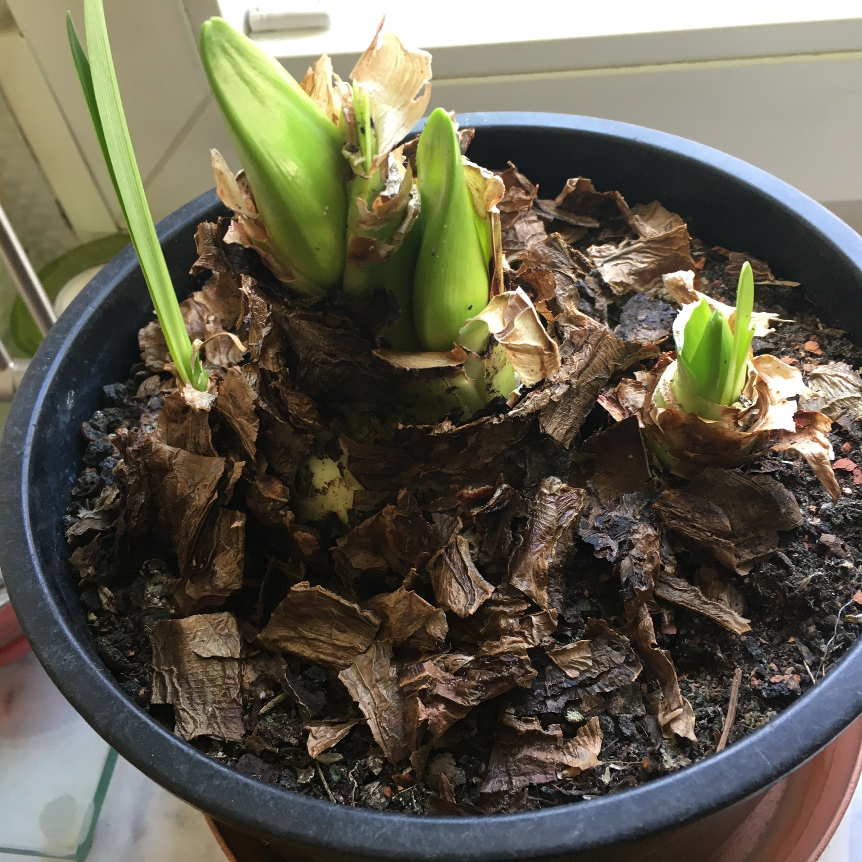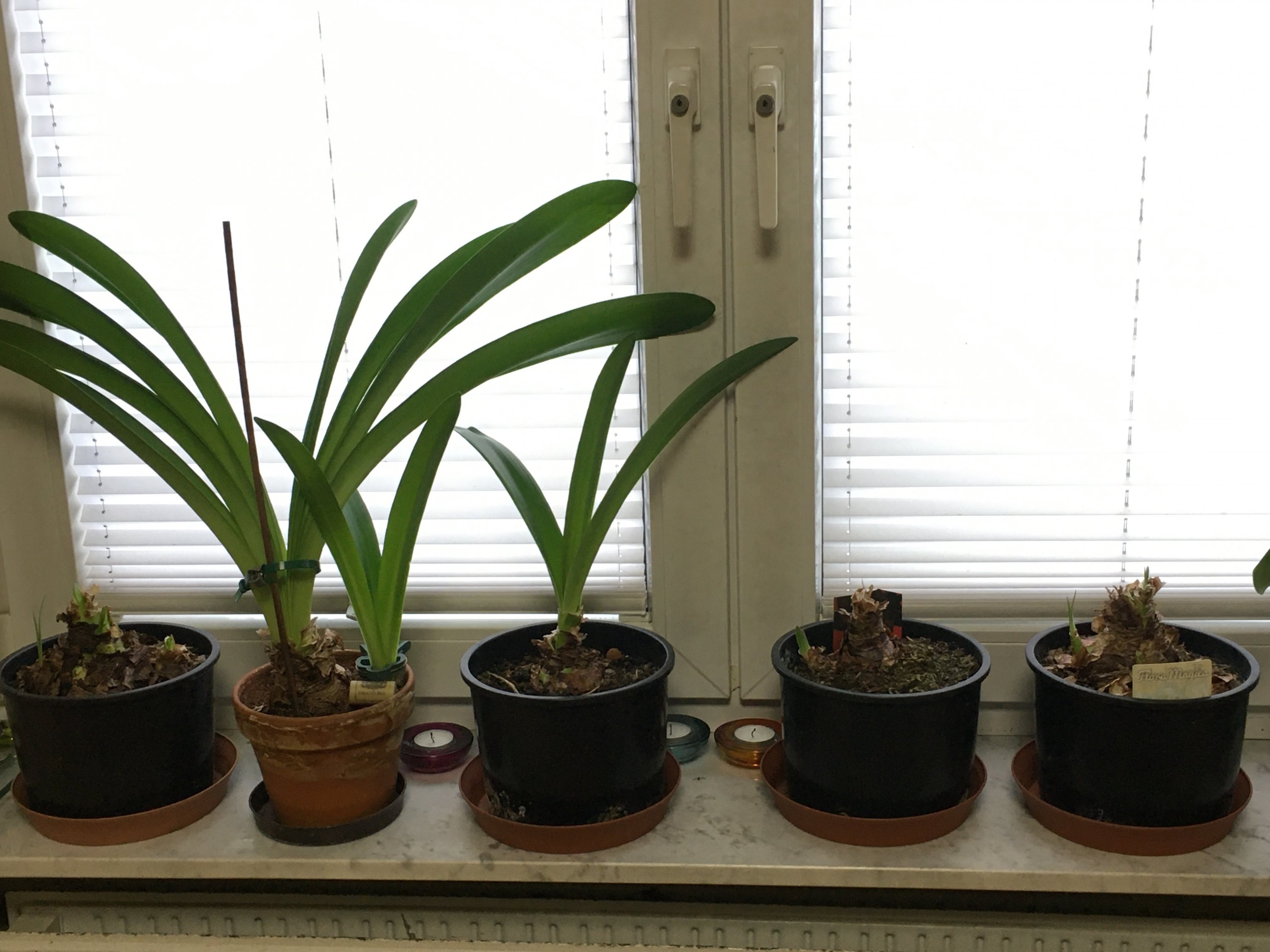 Eigentlich waren diese Amaryllis zum Wachsen auf der Fensterbank platziert worden, doch einige wollten unbedingt noch Blütenknospen treiben :22x22-emoji-u1f600: