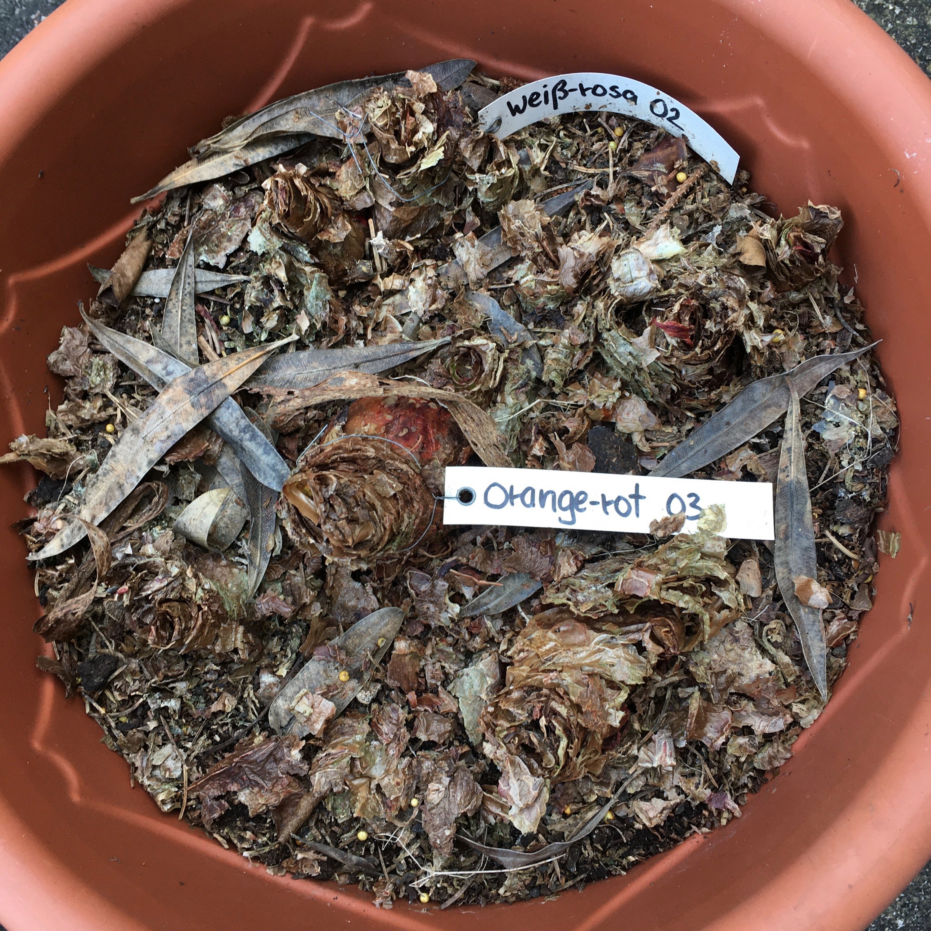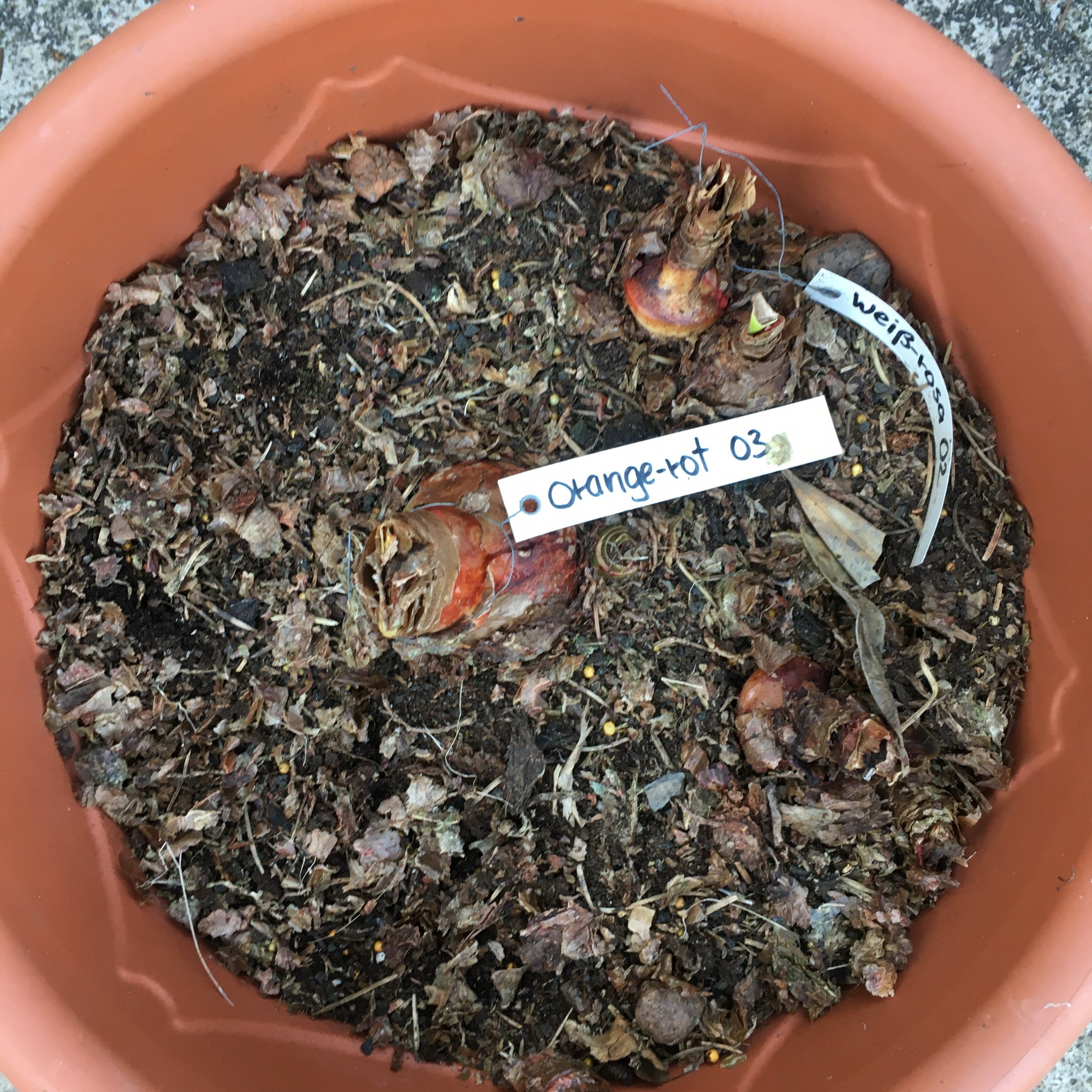 Das ist noch nicht alles... am Samstag diesen Kübel mit Amaryllis-Zwiebeln unter dem großen Terrassentisch entdeckt :22x22-emoji-u1f632: ... Anhang anzeigen 6119 ...der war im Herbst noch zu naß, um ihn in den Keller zu räumen und sollte noch trocknen - trocken ist er jetzt ;)