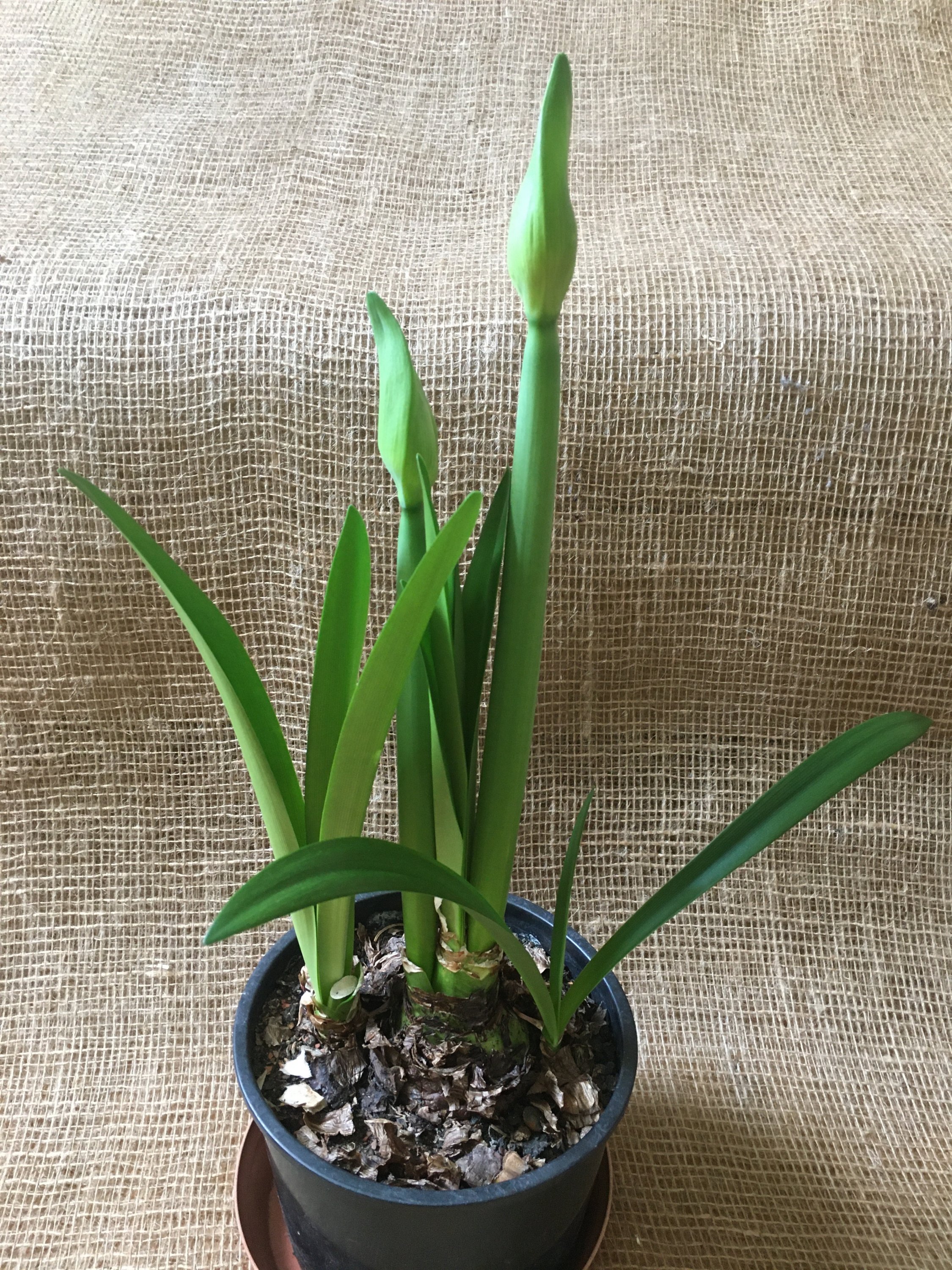 Dadurch, dass im Winter die Amaryllis-Zwiebel, in Töpfen verkauft werden, in die sie grad so reinpassen,