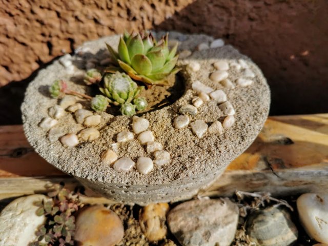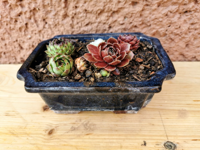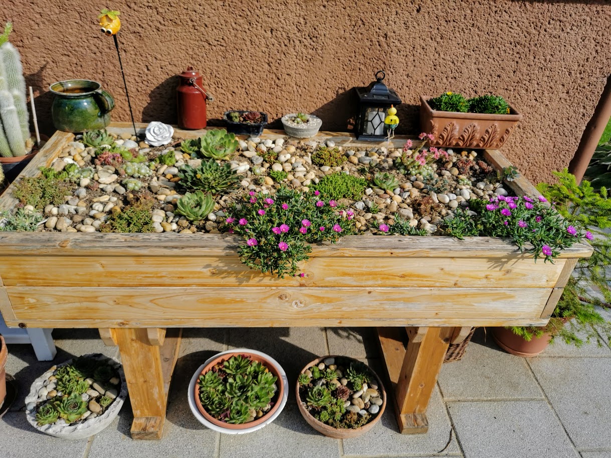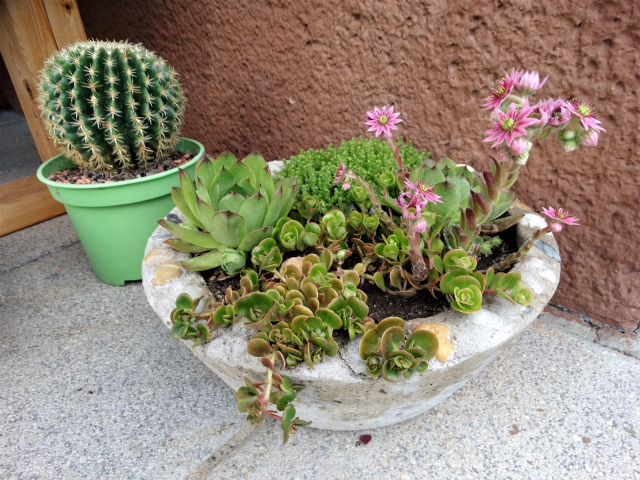 Anstatt der gräßlichen Plastikblumen kann ich auch Hauswurzen, Sempervivum oder Mittagsblumen empfehlen.
