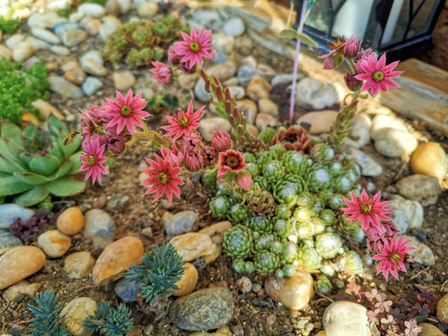 Wenn die Hauswurzen blühen so wie jetzt gerade sieht das ganz hübsch aus
