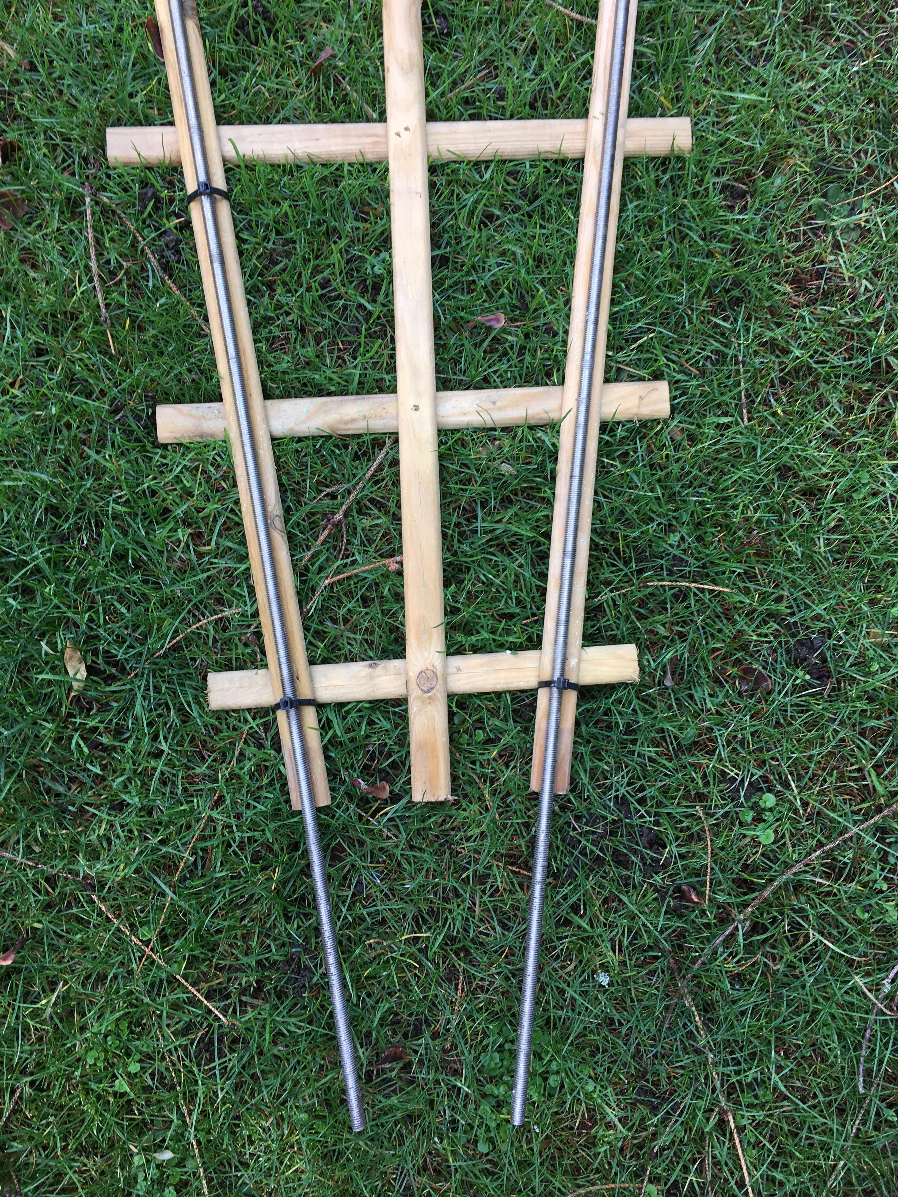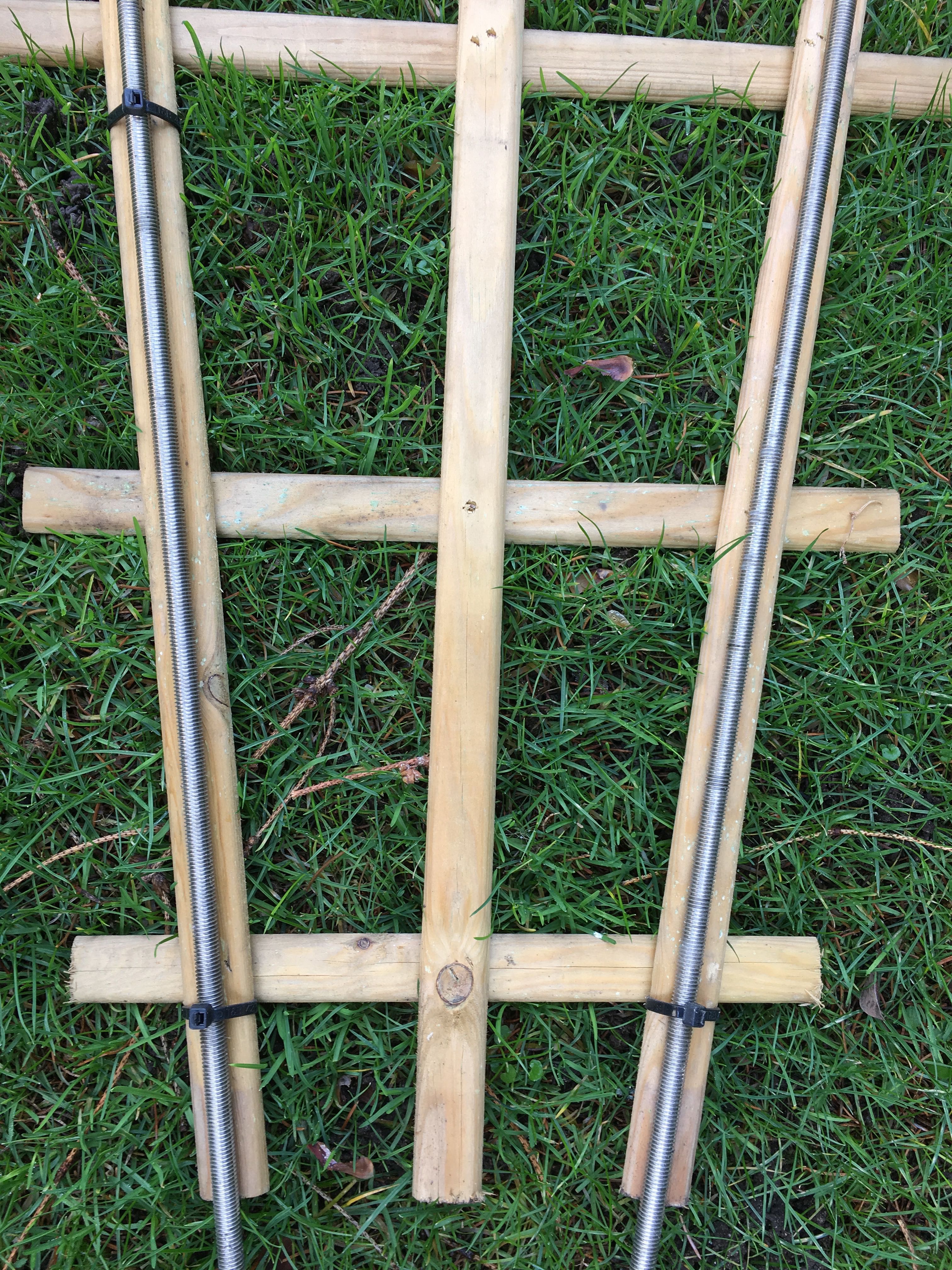 habe ich das Gestell an zwei Metall-Stangen befestigt.