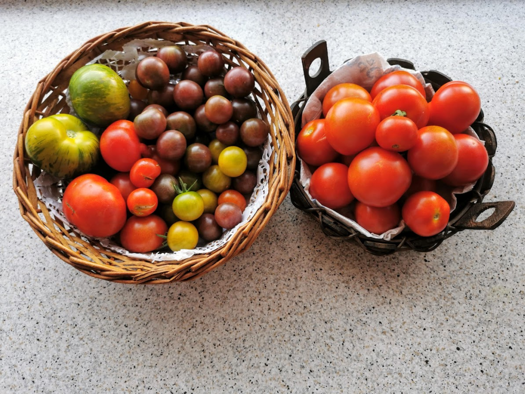 Auch bei mir sind jetzt die Tomaten reif, es gab Tomatensalat.Paradeiskraut mit Rindfleisch - gestern wieder viel Tomaten geerntet...