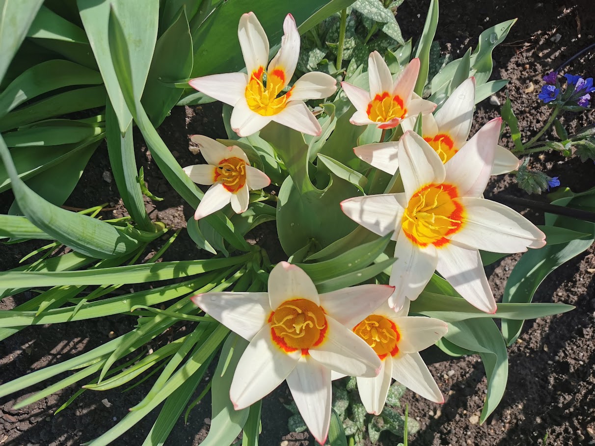 Rundum ist alles noch kahl und auf den Bergen ist überall noch Schnee. Trotzdem blüht auch bei mir schon immer mehr oder macht sich zumindest auf den Weg dahin.